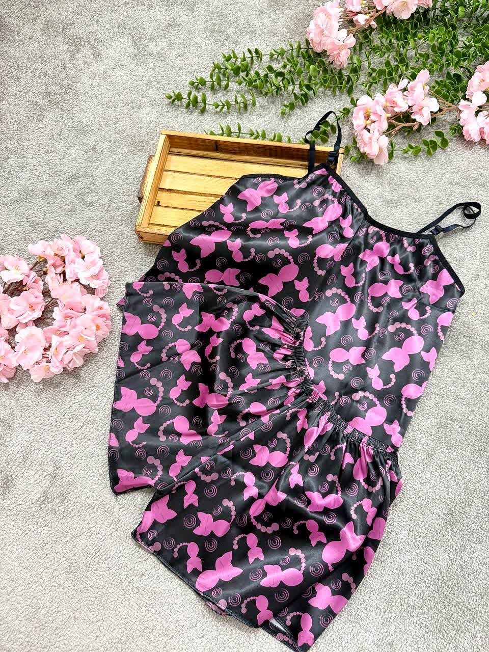 ست لباس خواب دو تیکه ساتن
