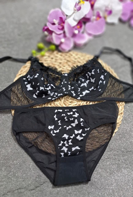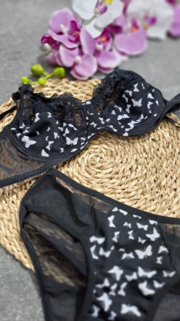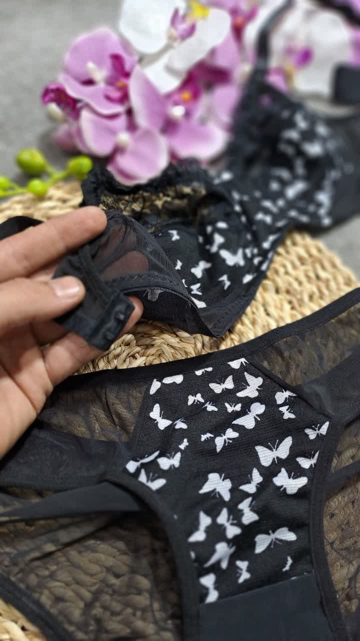 🦋ست شورت سوتین زیر نخ اعلا طرح پروانه🦋✅